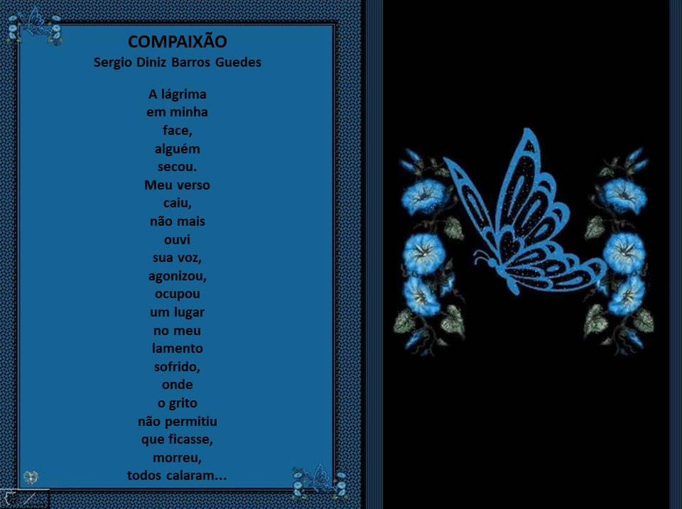 Sou Sergio Diniz Barros Guedes, baiano, Maragogipano, Gaúcho por adoção. Formado em Administração de Empresas, Professor de Administração Hospitalar. Desde a adolescência que escrevo poesias, procurando enaltecer a vida e a mulher.